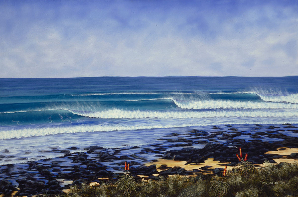 High quality prints that look just like Todd’s original oil on canvas paintings. Pipeline, Nias & Jeffrey’s Bay now available on canvas gallery wrap or frame-ready canvas (frame not included). Prices vary accordingly. Great for the home or office, and make great gifts.
